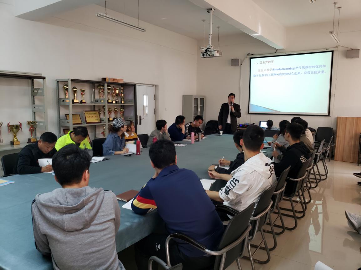 主讲赵俊强副教授以《混合式教学模式探索与案例解析》为主题,内容分为五个部分,首先从教育学理论出发,讲解了什么是混合式教学、教育+互联网(教育信息化2.0)新时代教学环境下学生和教师的现状反思;然后赵俊强副教授详细讲述了混合式教学模式和教学设计的目标、课程网络教学平台分类资源建设、师生问答方法,并通过典型实际案例,阐述混合式教学在教学模式改革中发挥的重要作用及对教学的极大促进,并以体育课为样本如何进行信息化混合教学,为我部教师列举了音乐与体育、体育信息化和人工智能与体育等教育教学改革思路。最后教学反思部分赵俊强教授指出混合式教学要着点于教学效果的影响因素分析和师生应善于总结收获。