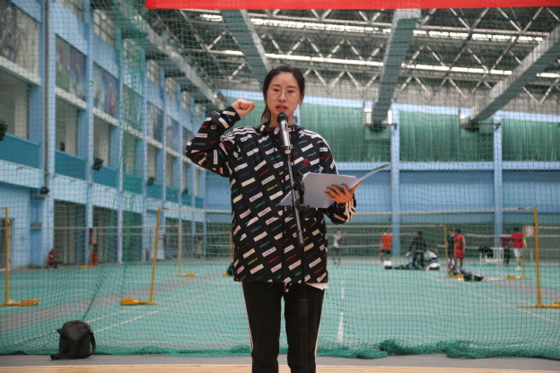 裁判员代表秦阳宣誓。他表示在比赛过程中,裁判员将严格遵守比赛规程,尊重运动员,尊重客观事实,公正裁决,秉公执法,确保比赛顺利进行。