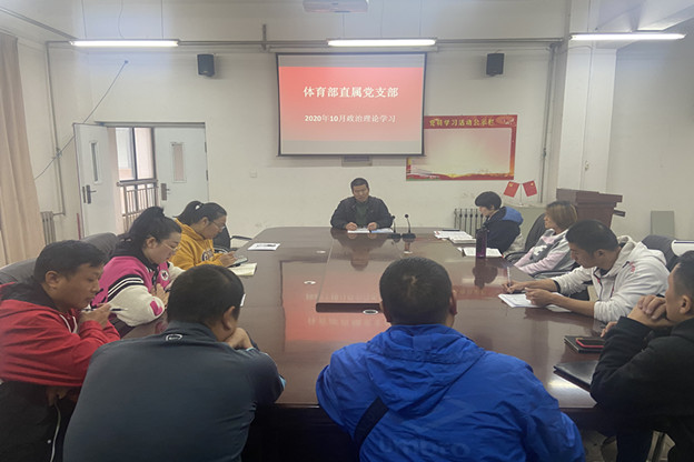 10月30日上午十点,体育部全体党员教师在党员会议室召开十月份政治理论学习,本次学习的主要内容是习近平总书记在纪念中国人民志愿军抗美援朝出国作战70周年大会上的讲话,本次会议由党支部书记蒋广涛同志主持。