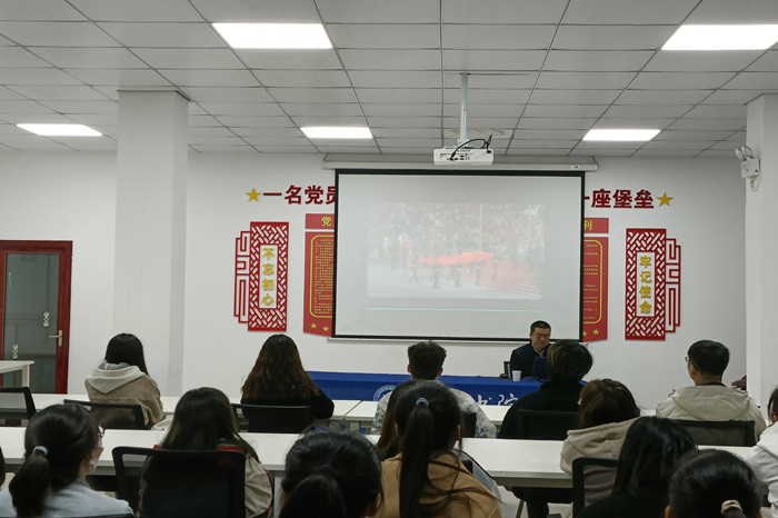 11月17日晚,体育部直属党支部书记蒋广涛以《站立起来的中国人再到体育强国》为主题,在仁智书院党务办公室为仁智书院青马班同学和学生代表上了一堂生动的思政课。