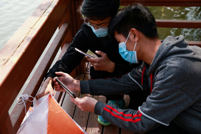 此次比赛从早上六点开始一直持续到中午十二点,共有120名学生参赛。每名参赛同学拿着指北针和手机,通过关注山海开元小程序,得到各自的在线比赛地图,打卡20个卡点位,每个卡点位都有知识问答任务,跑完全程后,小程序会自动推送成绩和排名。问答题涵盖两会知识、奥运精神、航天发射、党的建设等多方面。