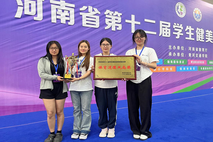 2025年河南省第十二届学生健美操啦啦操比赛于5月29日至6月4日在黄河交通学院体育馆正式开赛。在领队杨晓林、教练员唐华老师和徐昕迪老师的带领下,我校啦啦操队荣获大学本科甲组大集体自由舞蹈自选动作第一名、体育道德风尚奖。同时,唐华老师和徐昕迪老师荣获“优秀教练员”称号。