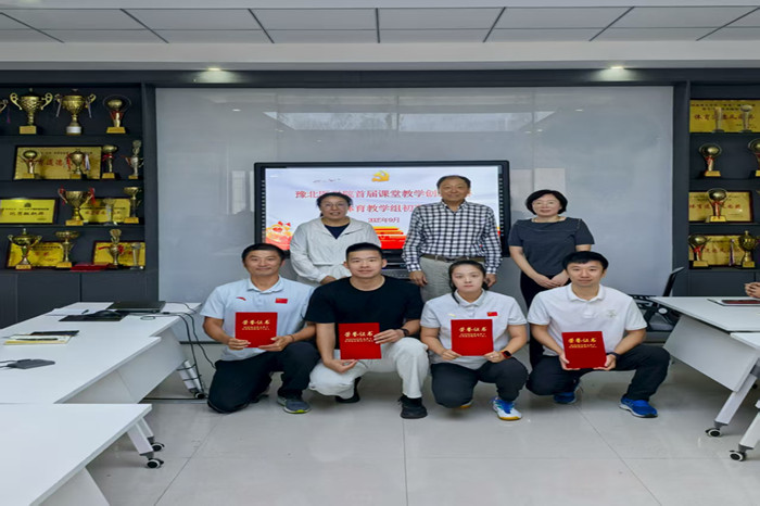 根据《河南省教育厅办公室关于举办第六届河南省本科高校教师课堂教学创新大赛实验教学组与体育教学组比赛的通知》(教高函〔2025〕358 号)、《豫北医学院关于举办首届教师课堂教学创新大赛实验教学组与体育教学组比赛的通知》文件要求,体育部于2025年9月11日上午十点半在三楼会议室举办豫北医学院首届教师课堂教学创新大赛体育教学组初赛。本次比赛特邀豫北医学院教务处副处长衣志爽担任专家评委,体育部副主任任盼红主持赛事活动。