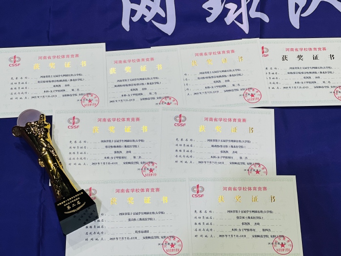 7月13日,河南省第十五届学生网球比赛暨河南省第十八届校长杯网球赛事在安阳圆满落幕。我校网球队凭借卓越表现与顽强拼搏精神,勇夺本科女子甲组团体亚军,并同时斩获女子双打亚军及女子单打第四名的优异成绩。
